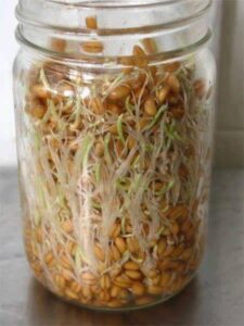 التخزين والاستهلاك: بعد اكتمال الإنبات، يُغسل القمح المبرعم جيدًا ويُحفظ في الثلاجة (البراد). الجرعة الموصى بها هي 50 إلى 60 جرامًا يوميًا للكبار، و 20 إلى 30 جرامًا للأطفال.
