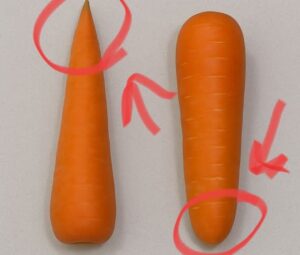 اشترِي حبتين من الجزر، واحدة دائرية الرأس وأخرى مدببة.