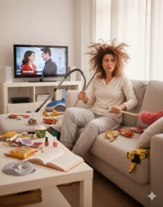 بساطة غير مقيدة: تتحول حياته إلى نسخة مبسطة. الوجبات قد تصبح ساندويتشات أو أطباقاً سهلة التحضير، وترتيب المنزل يتبع نظاماً أقل تعقيداً. إنها ليست فوضى، بل هي “فوضى منظمة” يشعر فيها بالراحة.