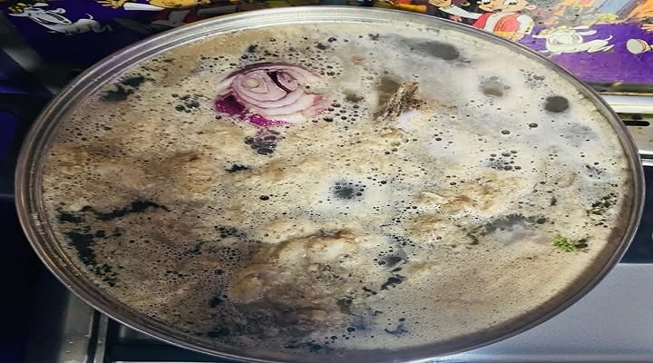 طبقة الريم او الرغوة اللي فوق شوربة اللحمة دليل على